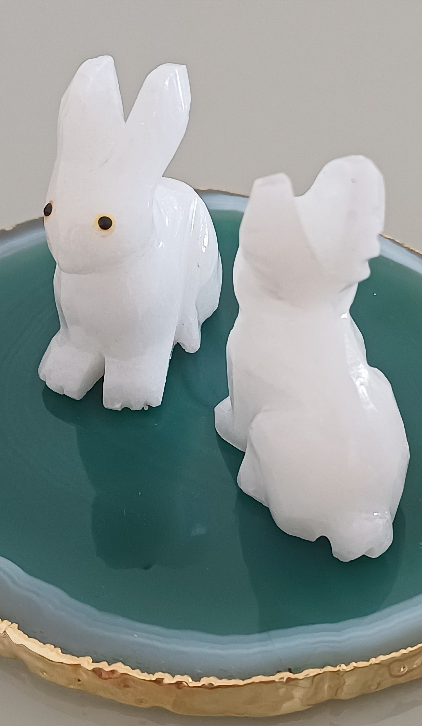 Este encantador Coelho Decorativo em Pedra Natural é a peça perfeita para adicionar um toque de elegância e charme ao seu espaço. Feito com uma linda pedra branca, este coelho esculpido à mão apresenta detalhes delicados e olhos em tom contrastante que trazem vida à sua forma. Ideal para decorar estantes, mesas de centro ou como um presente especial, este coelho não só embeleza seu ambiente, mas também traz um simbolismo de prosperidade e renovação.