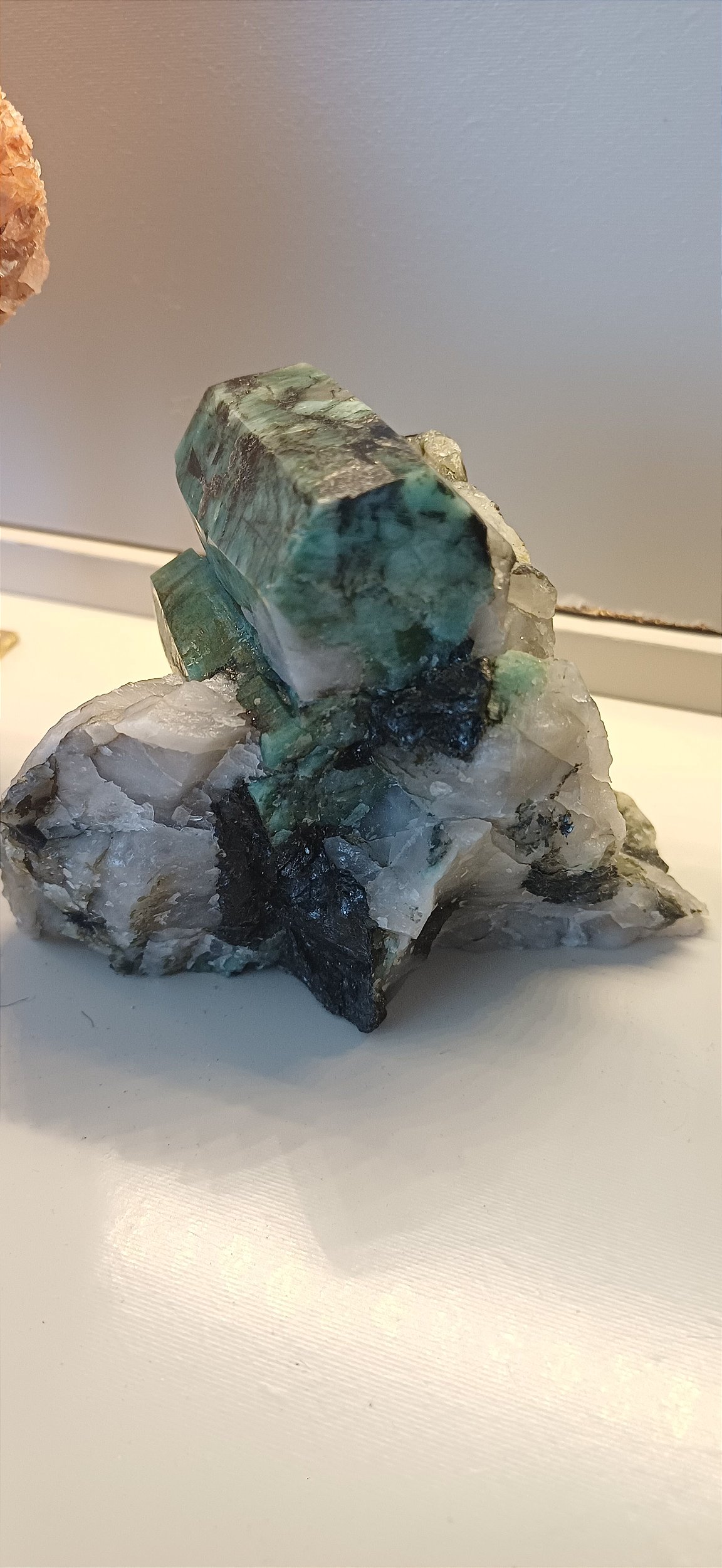 Peça natural de esmeralda na matriz que traz autenticidade e beleza para colecionadores e apreciadores de pedras preciosas. Produto bruto, diretamente da formação mineral, preserva sua cor esverdeada intensa e textura única.