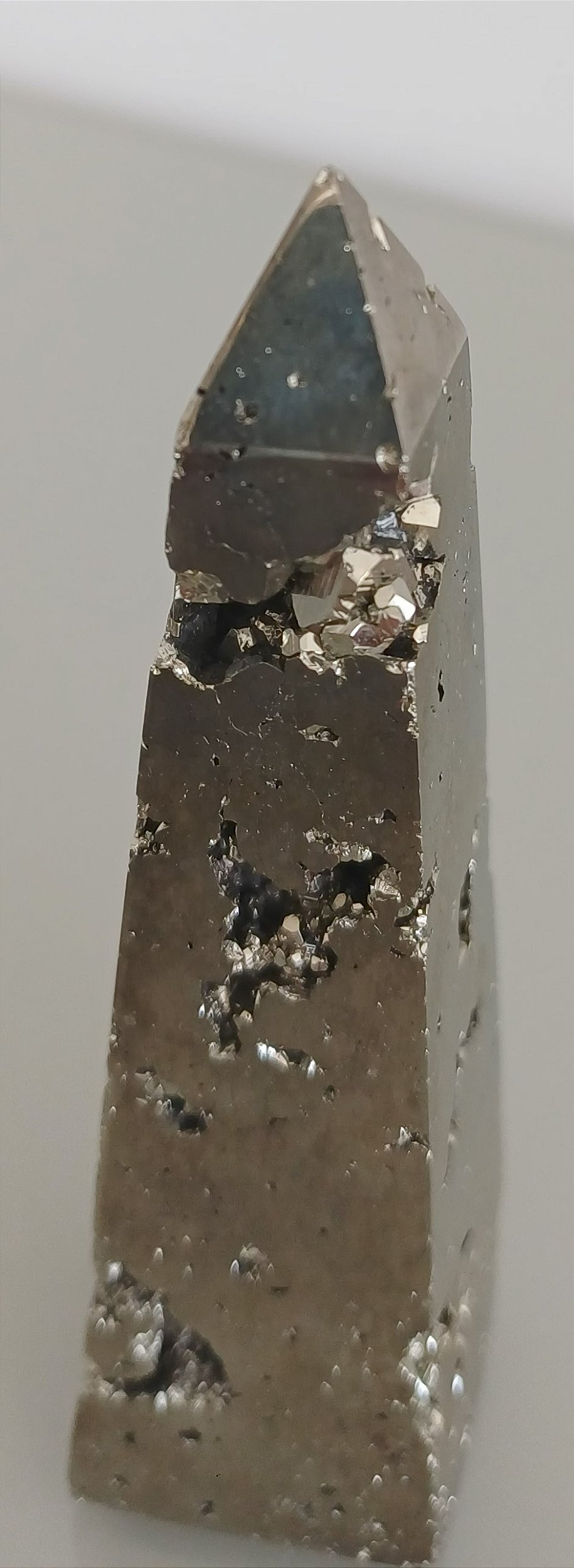 A Torre Obelisco Polida de Pirita é uma peça única que traz a beleza da natureza para a sua decoração. Com uma altura impressionante e acabamento polido, este cristal metálico exibe um brilho dourado que encanta e chama a atenção em qualquer ambiente. A pirita, conhecida como 'ouro dos tolos', é valorizada não só pela sua estética, mas também pelas suas propriedades energéticas, sendo associada à prosperidade e à proteção.